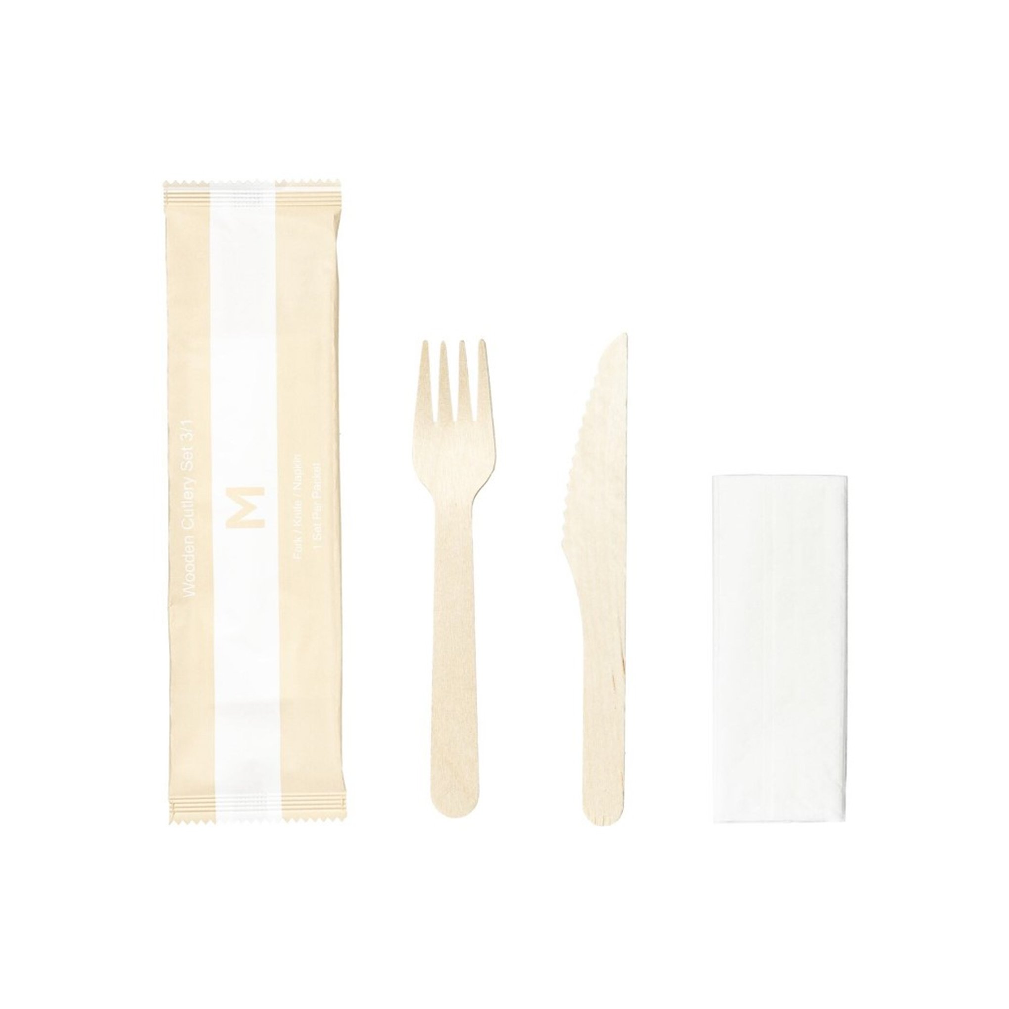 Disposable Wooden Cutlery Set 3 in 1 Fork/Knife/Napkin