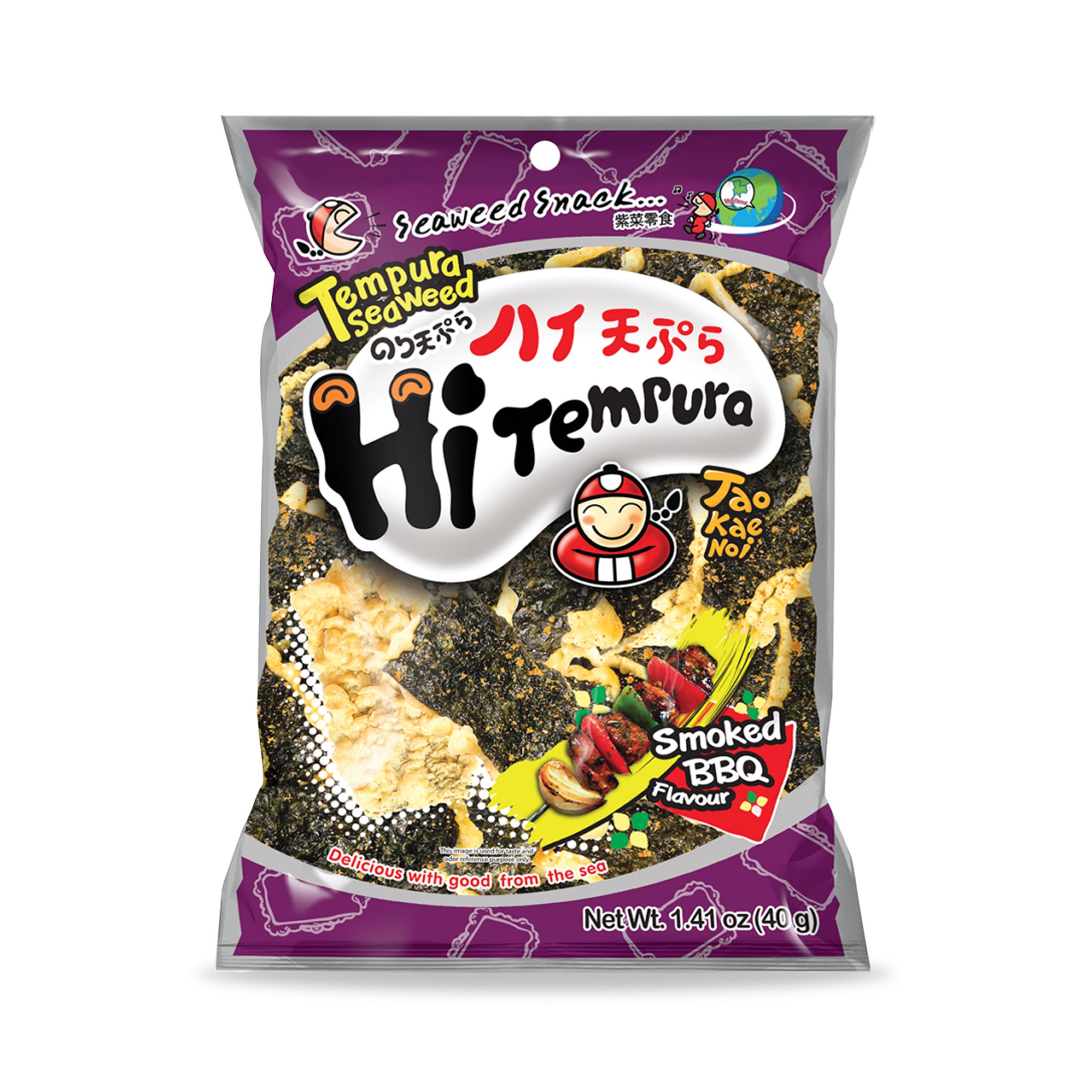 Tao Kae Noi Tempura Seaweed (BBQ Flavour) offers a cutting-edge experience by coating crispy seaweed strips with tempura batter. The high quality seaweed is grilled at a specific temperature that enhances its crispiness while maintaining the natural taste of seaweed. It is ideal as an on-the-go snack, to serve with drinks or to add on top of noodles.