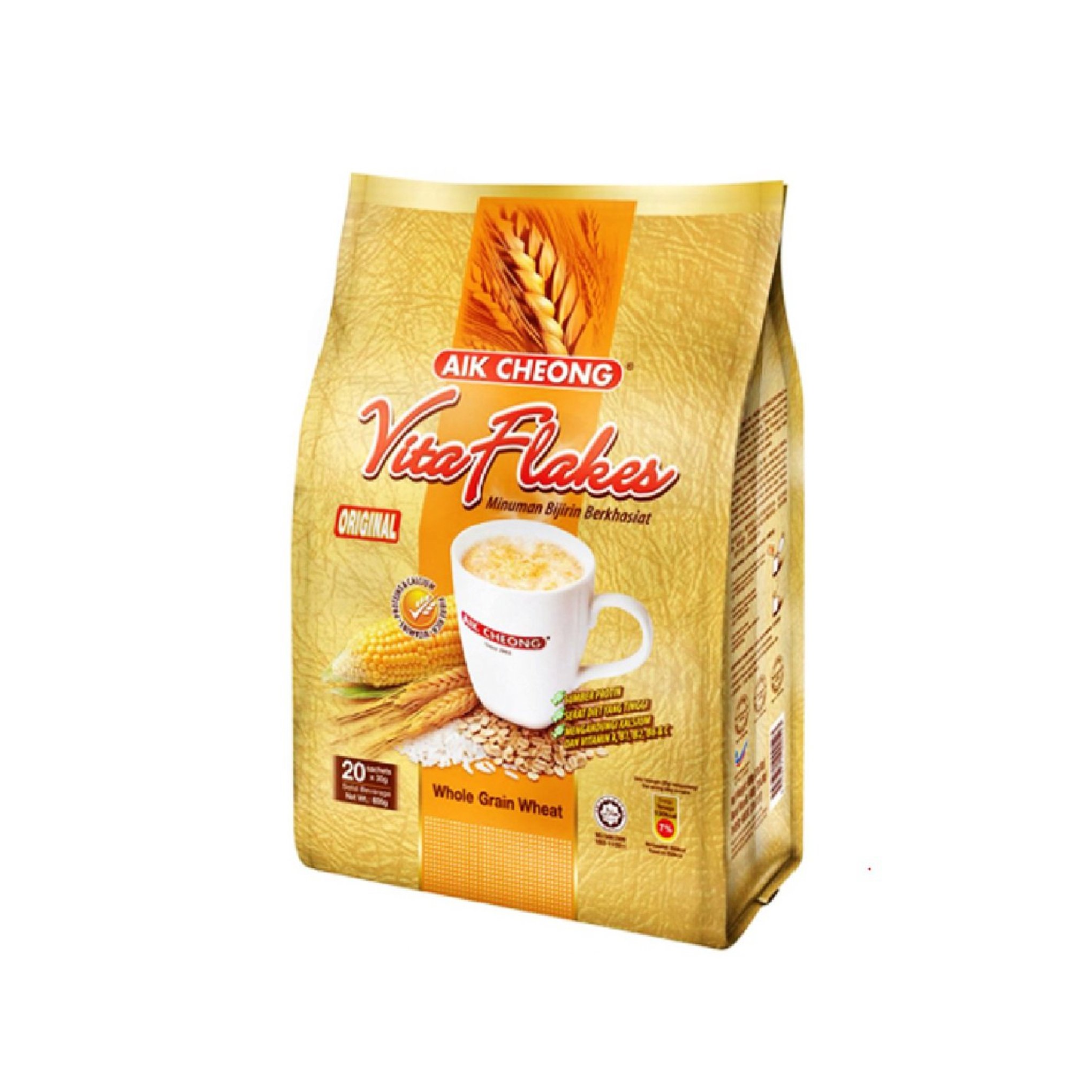 Aik Cheong Vita Flakes Whole Grain Wheat Drink is a crunchy and tasty high-fiber instant cereal packed with the goodness of wholesome cereal grains, creamer, and just the right touch of sugar. Enriched with oat powder and brown rice powder, it’s a healthier choice for any time of the day. A hearty, wholesome drink that helps your family feel good and energized, always.